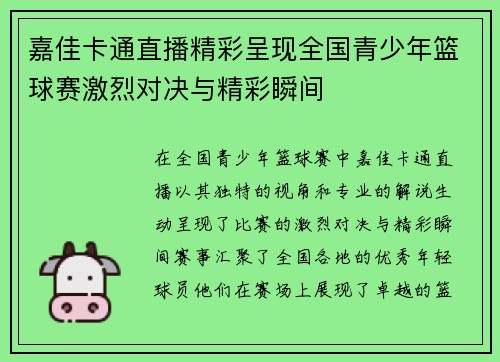 嘉佳卡通直播精彩呈现全国青少年篮球赛激烈对决与精彩瞬间